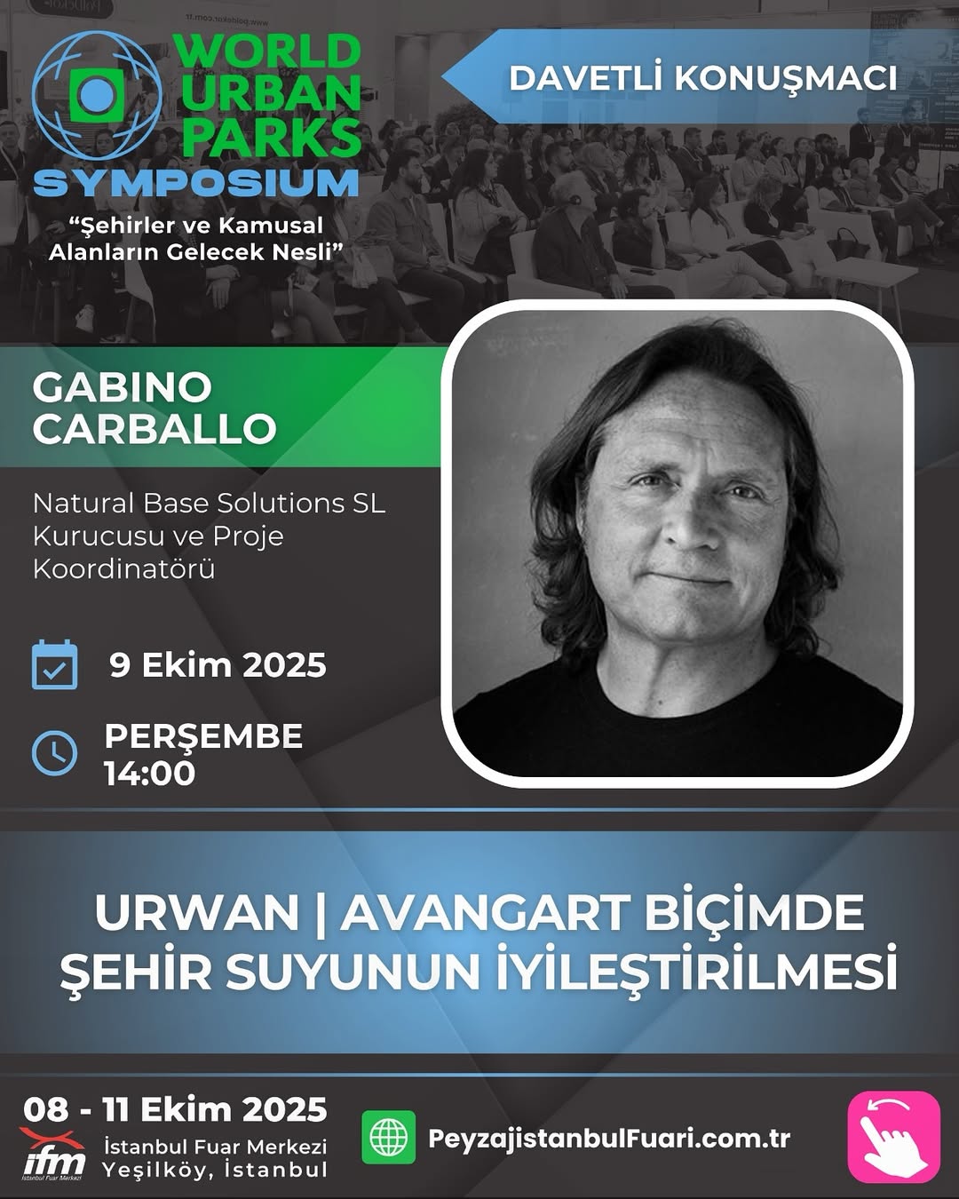 The URWAN – Urban Regenerative Water Avant-garde project was presented at the World Urban Parks Symposium, held from 8 to 10 October 2025 at the İstanbul Fair Centre (Hall 10), within the framework of the Landscape Istanbul Fair (LIF 2025). The symposium brought together international experts, practitioners, public authorities, and innovators to discuss the future of planning, design, and maintenance of parks and urban green spaces.